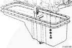 注: 發動機使用多種密封墊和/或 RTV 組合提供密封。安裝油底殼時,使用油底殼上原有的密封墊/或 RTV 組合。