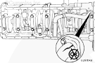 安裝活塞冷卻噴嘴和螺栓。擰緊螺栓。扭矩值: 33 n.m [24 ft-lb]