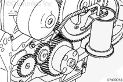 注: 如果安裝新的機油泵,確保齒輪的側隙正確。
