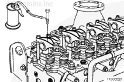 將搖臂總成和軸座安裝到其原來的位置。確保排氣搖臂安裝了更長的調節螺釘鎖緊螺母。