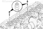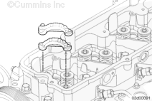 用清潔的機油潤滑螺栓螺紋。將六個帶有螺紋的隔圈安裝到缸蓋上.扭矩值: 24 n.m [212 in-lb]