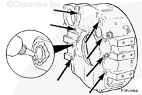 檢查缸體后端面和飛輪安裝表面是否清潔,有無凸起的拉痕或毛刺。安裝兩個定位銷,零件號為 3163934。在導向銷上方安裝飛輪殼,確保飛輪殼位于定位銷上。