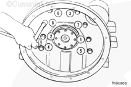 檢查曲軸后端面和飛輪安裝法蘭是否清潔,有無拉痕或毛刺。將飛輪安裝在導向銷上。