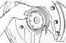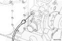如果先前裝備,則應在飛輪殼后側安裝新的凸輪軸軸頸孔矩形密封圈。涂抹少量密封膠(零件號 3164067),將密封圈固定入位,直至安裝飛輪殼。