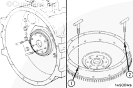 確定螺栓螺紋的圖案和規格,并在飛輪上的點(1)和點(2)安裝兩個 T 形手柄。