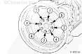 擰緊飛輪螺栓時使用盤車工具(零件號 3824591)固定曲軸。按星形方式擰緊螺栓。扭矩值: 137 n.m [101 ft-lb]