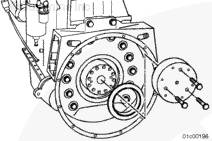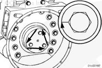 每次擰緊螺釘不超過(guò) ½ 圈,順時(shí)針擰緊螺釘直至安裝工具與飛輪殼緊密配合。