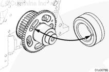 嘗試在四個位置(相距約 90 度),在曲軸齒輪和轉速信號輪之間插入 [0.25 mm] 0.010-英寸的塞尺來檢查安裝。