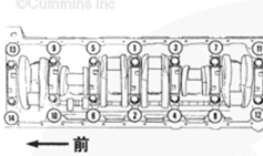 在拆卸過程中對康明斯B3.9、B4.5、B4.5 RGT 和 B5.9 發(fā)動機主軸承蓋的位置進行了編號。從缸體前部開始為 1 號。
