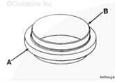 注: 在配備曲軸唇形后油封的發(fā)動機上,新油封提供了一個油封導(dǎo)向工具 (B)。在將油封安裝在曲軸前端上時,此油封必須留在油封導(dǎo)向工具上。這可確保在安裝期間>不會損壞油封唇部。