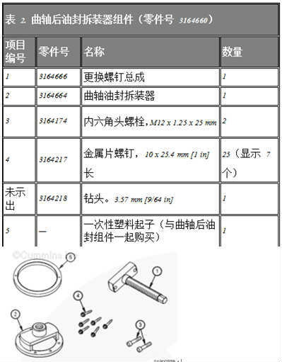 每個康明斯B3.9、B4.5、B4.5 RGT 和 B5.9 發(fā)動機新曲軸唇形油封都帶有一個一次性的油封起子。