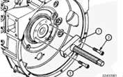 固定拆裝器螺釘,將曲軸油封拆裝器 (2) 安裝在拆裝器螺釘總成上。順時針旋轉(zhuǎn)曲軸油封拆裝器將其推向油封,直到附帶的一次性起子抵住曲軸后油封。