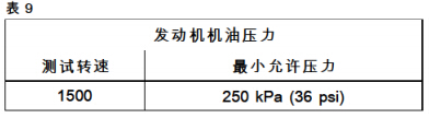 4請參閱表9以確定發動機機油壓力是否可以接受。