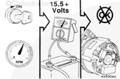 如果電壓限制超過了表中的電壓值,則維修或更換充電機或調節器