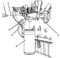 6如有必要,將閥(1)從發(fā)動(dòng)機(jī)機(jī)油濾清器底座(3)上拆下。將O形密封圈(2)從閥(1)上拆下。