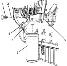 2使用工具(A),拆下發(fā)動(dòng)機(jī)機(jī)油濾清器(6)。有關(guān)正確的步驟,請(qǐng)參閱《Perkins1106A/C發(fā)動(dòng)機(jī)操作和保養(yǎng)手冊(cè)》,“發(fā)動(dòng)機(jī)機(jī)油和濾清器-更換”
