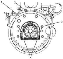 Perkins1106A/C發動機機殼體-拆卸和安裝 (標準Perkins1106A/C發動機機殼體) 拆卸步驟 開始: a.拆下飛輪。有關正確的步驟,請參閱《Perkins1106A/C發動機拆解和組裝》,“飛輪-拆卸”。 注意:保持所有零件清潔無雜質。雜質會造成快速磨損和縮短部件壽命。 1將螺栓(3)從Perkins1106A/C發動機飛輪Perkins1106A/C發動機機殼體(1)的位置(X)上拆下。 2將工具(A)安裝在Perkins1106A/C發動機飛輪Perkins1106A/C發動機機殼體(1)上的位置(X)。 3將適當的起吊設備安裝到Perkins1106A/C發動機飛輪Perkins1106A/C發動機機殼體上來支撐住Perkins1106A/C發動機飛輪Perkins1106A/C發動機機殼體。Perkins1106A/C發動機飛輪Perkins1106A/C發動機機殼體的重量約為40kg(88lb)。 4將螺栓(2)和其余螺栓(3)從Perkins1106A/C發動機飛輪Perkins1106A/C發動機機殼體(1)上拆下。 5使用適當的起吊設備,將Perkins1106A/C發動機飛輪Perkins1106A/C發動機機殼體(1)從Perkins1106A/C發動機缸體上卸下。 6.拆下防塵密封件(5)。 7.如有必要,將定位銷(4)從Perkins1106A/C發動機缸體上卸下。 安裝程序(標準Perkins1106A/C發動機機殼體) 注意:保持所有零件清潔無雜質。雜質會造成快速磨損和縮短部件壽命。 1.確保Perkins1106A/C發動機飛輪Perkins1106A/C發動機機殼體清潔且無損壞。如有必要,更換Perkins1106A/C發動機飛輪Perkins1106A/C發動機機殼體。 2檢查Perkins1106A/C發動機曲軸后油封(6)有無泄漏。如果觀察到漏油,更換Perkins1106A/C發動機曲軸后油封。有關正確的步驟,請參閱《Perkins1106A/C發動機拆解和組裝》,“Perkins1106A/C發動機曲軸后油封-拆卸”和《Perkins1106A/C發動機拆解和組裝》,“Perkins1106A/C發動機曲軸后油封-安裝”。 3清潔Perkins1106A/C發動機缸體后表面。如有必要,將定位銷(4)安裝到Perkins1106A/C發動機缸體上。 4將工具(A)安裝到Perkins1106A/C發動機缸體上。 5安裝防塵密封件(5)。 6將適當的起吊設備安裝到Perkins1106A/C發動機飛輪Perkins1106A/C發動機機殼體上。Perkins1106A/C發動機飛輪Perkins1106A/C發動機機殼體的重量約為40kg(88lb)。 7使用起吊設備對準Perkins1106A/C發動機飛輪Perkins1106A/C發動機機殼體(1)與工具(A)。將Perkins1106A/C發動機飛輪Perkins1106A/C發動機機殼體安裝到Perkins1106A/C發動機缸體上。 8安裝螺栓(2)和螺栓(3)。 9拆下工具(A)。安裝其余的螺栓(3)。 10.當安裝了8.8級別的螺栓時,按照步驟10.a至步驟10.b。 a.擰緊螺栓(3)至扭矩為63N·m(46lbft)。 b.擰緊螺栓(2)至扭矩為78N·m(58lbft)。 11.當安裝了10.9級別的螺栓時,按照步驟11.a至步驟11.b。 a.擰緊螺栓(3)至扭矩為115N·m(85lbft)。 b.擰緊螺栓(2)至扭矩為190N·m(140lbft)。 12.檢查Perkins1106A/C發動機飛輪Perkins1106A/C發動機機殼體(1)和Perkins1106A/C發動機曲軸的對準。有關更多信息,請參閱《系統操作、測試和調整》,“Perkins1106A/C發動機飛輪Perkins1106A/C發動機機殼體-檢查”。 結束: a.安裝飛輪。有關正確的步驟,請參閱《Perkins1106A/C發動機拆解和組裝》,“飛輪-安裝”。