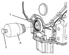 2.將螺栓(2)擰入工具(A)以拆卸Perkins1106A/C發動機曲軸前油封(1)。