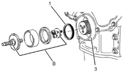 5將工具(B)從Perkins1106A/C發動機曲軸上卸下。