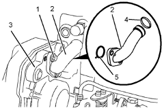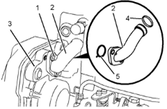 1拆下將旁通管(2)固定在前Perkins1106A/C發(fā)動機機殼體(3)上的螺栓(1)。將旁通管(2)從Perkins1106A/C發(fā)動機缸蓋上拆下。從旁通管(2)上卸下O形密封圈(4)和(5)。