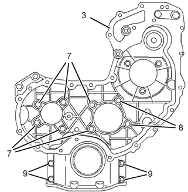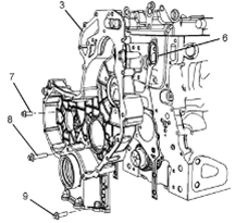 2.將螺栓(7)、(8)和(9)從前Perkins1106A/C發(fā)動機機殼體(3)上拆下。