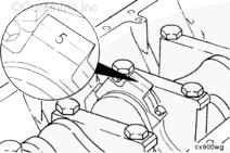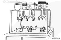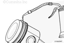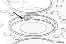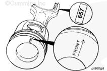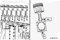 康明斯ISB5.9 G CM2180發動機活塞和連桿總成 概述 TOC 與康明斯ISB5.9 G CM2180發動機功率有關的問題有很多,包括機油消耗過大、冒煙、竄氣和性能不良,它們可能由活塞環與缸壁之間的密封不良引起。A 竄氣測量值有助于發現問題。參考第 14 節中的步驟 014-002。 連接康明斯ISB5.9 G CM2180發動機活塞和連桿的活塞銷采用自由浮動的中空活塞銷。已經完成從活塞冷卻噴嘴通過滯留噴霧的方法潤滑銷和軸頸。 康明斯ISB5.9 G CM2180發動機連桿的活塞銷端帶有切削角度,以增加軸承受力面積。連桿端頭裝有青銅襯套。 準備步驟 警告 為了減小人身傷害的可能性,應避免皮膚直接接觸熱機油。 警告 冷卻液有毒。避免兒童與寵物接觸冷卻液。如果不再繼續使用,應按照當地環保法規進行處理。 排放機油。參考第 7 節中的步驟 007-025。 拆下油底殼和密封墊。參考第 7 節中的步驟 007-025。 排放冷卻液。參考第 8 節中的步驟 008-018。 拆下缸蓋。參考第 2 節中的步驟 002-004。 拆卸 TOC 根據康明斯ISB5.9 G CM2180發動機氣缸位置標記每個連桿蓋。 使用康明斯ISB5.9 G CM2180 發動機盤車工具(零件號 3824591)旋轉曲軸,直到活塞位于積碳下方(可在活塞環行程區域的上方找到)。 注意 不要用砂布或砂紙去除缸孔上的積碳。來自這些材料的氧化鋁或硅微粒會嚴重損壞康明斯ISB5.9 G CM2180 發動機。 用刮刀或鈍邊工具松動積碳。不要讓刮刀損壞缸套。 注: 在清潔缸孔時,執行圓柱運動,不是垂直運動,確保不造成泄漏通道。 用 Scotch-Brite 清潔墊或等同物清除剩余的積碳。 拆下康明斯ISB5.9 G CM2180發動機螺釘、連桿蓋和連桿軸承。參考第 1 節中的步驟 001-005。 將康明斯ISB5.9 G CM2180發動機連桿和活塞總成推出缸孔。注意不得損壞連桿或軸承。 用雙手取出活塞和連桿總成。 注: 活塞和連桿總成必須安裝在與拆卸時相同的氣缸上。如果要繼續使用這些零件,這樣會使磨損的配合面正確配合。 使用標簽標記拆下的活塞和連桿總成所屬的缸號。 將康明斯ISB5.9 G CM2180發動機連桿和活塞總成放入容器中以免損壞。 解體 TOC 使用康明斯ISB5.9 G CM2180發動機活塞環擴張器(零件號 3823137)拆卸活塞環。參考第 1 節中的步驟 001-047。 拆卸康明斯ISB5.9 G CM2180發動機卡環。 拆下康明斯ISB5.9 G CM2180發動機活塞銷。 注: 不需要加熱活塞。 組裝 TOC 確保活塞上的前標志以及連桿和連桿蓋上的數字的方向如圖所示。 將康明斯ISB5.9 G CM2180發動機卡環安裝到活塞前側的活塞銷槽中。 用清潔的燃氣康明斯ISB5.9 G CM2180 發動機機油潤滑活塞銷及銷孔。 安裝康明斯ISB5.9 G CM2180發動機銷。 注: 安裝活塞銷時無需加熱活塞,但活塞必須在室溫或室溫以上。 安裝康明斯ISB5.9 G CM2180發動機第二個活塞銷卡環。 安裝 TOC 將康明斯ISB5.9 G CM2180發動機軸瓦裝入連桿和連桿蓋中。確保軸瓦上的定位舌位于連桿蓋和連桿的槽中。 用一薄層清潔的康明斯ISB5.9 G CM2180 發動機機油潤滑連桿軸承。 安裝康明斯ISB5.9 G CM2180發動機活塞環。參考第 1 節中的步驟 001-047。 使用清潔的燃氣康明斯ISB5.9 G CM2180 發動機機油潤滑活塞環和活塞裙。 放置各個康明斯ISB5.9 G CM2180發動機活塞環,使每個活塞環開口相互成 120 度。 注意 如果使用帶式活塞環壓縮器,確保帶的內側沒有掛在活塞環的缺口并折斷活塞環。 將康明斯ISB5.9 G CM2180發動機活塞環壓縮器(零件號 3823290)安裝到活塞上。 康明斯ISB5.9 G CM2180發動機壓縮活塞環。 使用清潔的燃氣康明斯ISB5.9 G CM2180 發動機機油潤滑缸孔。 使用康明斯ISB5.9 G CM2180 發動機盤車工具(零件號 3824591),將要安裝的活塞連桿軸頸置于下止點。 注意在插入連桿時不要損壞缸壁。 將康明斯ISB5.9 G CM2180發動機活塞和連桿總成裝入缸孔,活塞上的前標記朝向缸體前部。 小心地將活塞推入缸孔,同時將連桿引導至曲軸軸頸處。 用清潔的康明斯ISB5.9 G CM2180 發動機機油潤滑螺紋和連桿螺釘頭的下部。 注: 印在連桿和連桿蓋間分型線上的編號必須匹配,并安裝在康明斯ISB5.9 G CM2180 發動機機油冷卻器側。 將康明斯ISB5.9 G CM2180發動機連桿蓋和螺釘安裝到連桿上。 交替擰緊 2 顆螺釘。 Torque Value: 30 n.m [22 ft-lb] 60 n.m [44 ft-lb] 順時針轉動 60 度。 注: 不要測量連桿蓋與曲軸間的間隙。 用塞尺測量康明斯ISB5.9 G CM2180發動機連桿與曲軸間的側隙。 曲軸必須能夠轉動自如。如果連桿未正確定位(定位舌正對凸輪軸),就會與凸輪軸接觸從而鎖死康明斯ISB5.9 G CM2180 發動機。 安裝康明斯ISB5.9 G CM2180發動機連桿蓋時檢查能否轉動自如。如果曲軸不能轉動自如,檢查連桿的安裝和軸承尺寸。 最后步驟 警告 為了減小人身傷害的可能性,應避免皮膚直接接觸熱機油。 警告 冷卻液有毒。避免兒童與寵物接觸冷卻液。如果不再繼續使用,應按照當地環保法規進行處理。 安裝康明斯ISB5.9 G CM2180發動機油底殼和密封墊。參考第 7 節中的步驟 007-025。 安裝康明斯ISB5.9 G CM2180發動機缸蓋。參考第 2 節中的步驟 002-004。 加注康明斯ISB5.9 G CM2180 發動機冷卻系統。參考第 8 節中的步驟 008-018。 用清潔的機油注滿康明斯ISB5.9 G CM2180 發動機。參考第 7 節中的步驟 007-025。 運轉康明斯ISB5.9 G CM2180 發動機,使之達到正常工作溫度,檢查有無泄漏。
