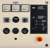 1001控制屏:⑴儀表:電壓表、電流表、頻率/轉(zhuǎn)速表、運行時間表、冷卻水溫表、潤滑油壓力表、電池電壓表
