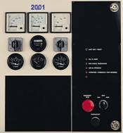 2001控制屏⑴ 儀表:電壓表、電流表、頻率/轉(zhuǎn)速表、運行時間表、冷卻水溫表、潤滑油壓力表、電池電壓表。