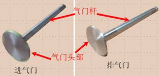 氣門(mén)分為進(jìn)氣門(mén)和排氣門(mén),分別控制進(jìn)氣和排氣,結(jié)構(gòu)相同,進(jìn)氣門(mén)頭比排氣門(mén)頭大。